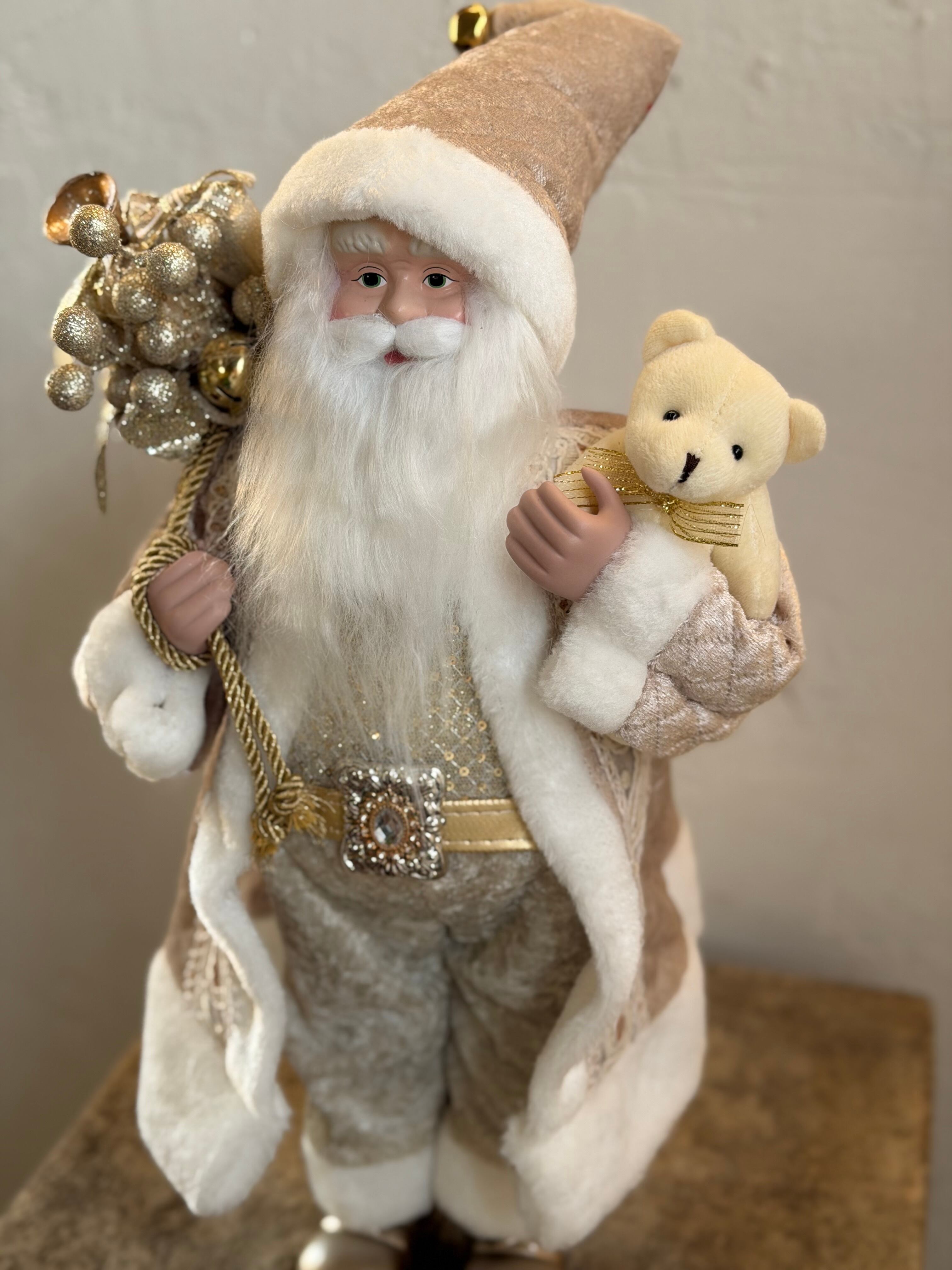このサンタクロースは、愛らしいデザインと細部にまでこだわった仕上げが特徴です。室内を華やかに彩り、子どもから大人まで、見る人の心を和ませる存在感があります。